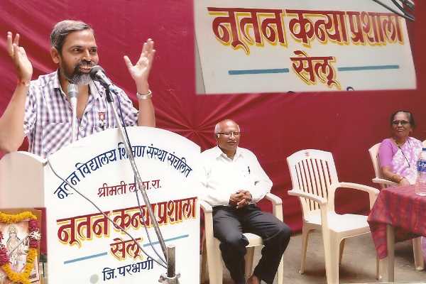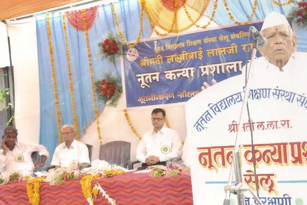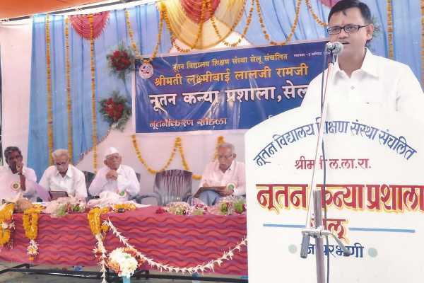 - प्रशालेच्या इमारतीच्या नूतनीकरण सोहळ्यात मार्गदर्शन करताना माणिकचंदजी बिनायके