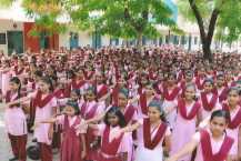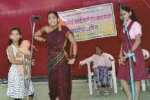 - नाट्य प्रयोग करताना प्रशालेच्या विद्यार्थिनी