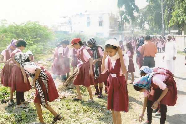- शासनाच्या स्वच्छता अभियानात सहभागी विद्यार्थिनी